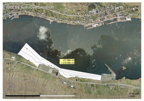 Tvøroyri Municipality is planning a new harbor area based on land reclamation in Trongisvágsfjørður. The area will be developed using surplus rock material from the upcoming Suðuroyartunnilin project, creating both environmental and economic synergies.